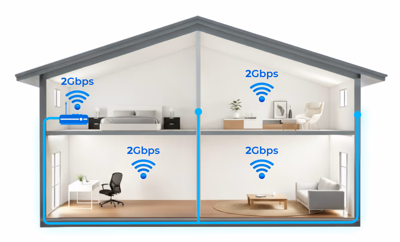 No messy wires and WiFi blind spots, just maximum speed.