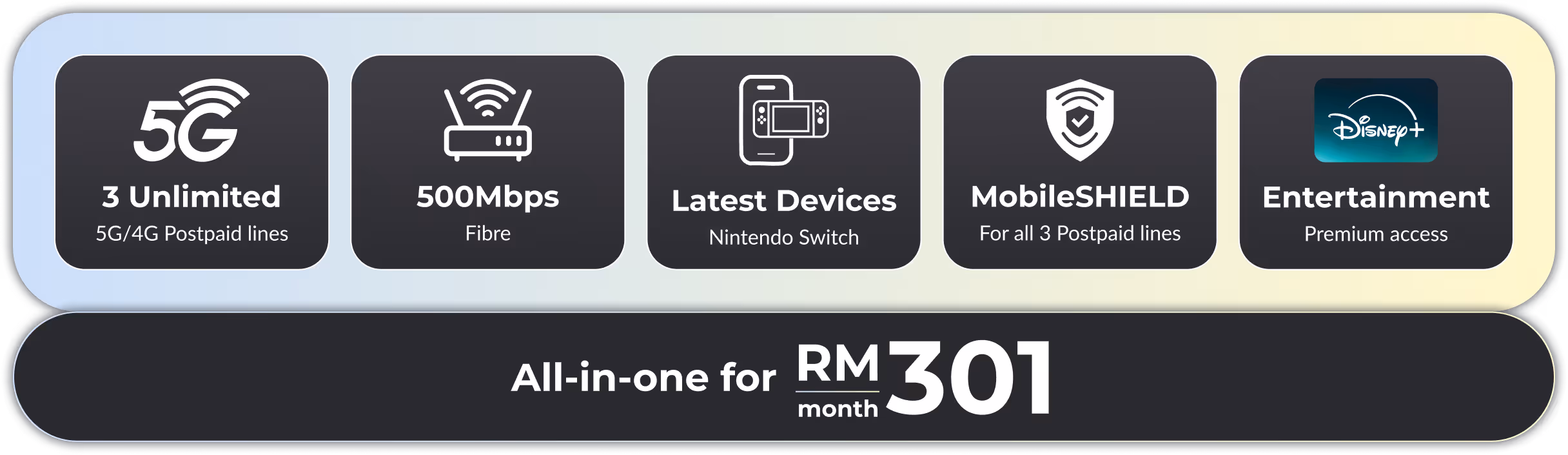 Enjoy great savings with CelcomDigi Postpaid. Even better with CelcomDigi One™ plans.