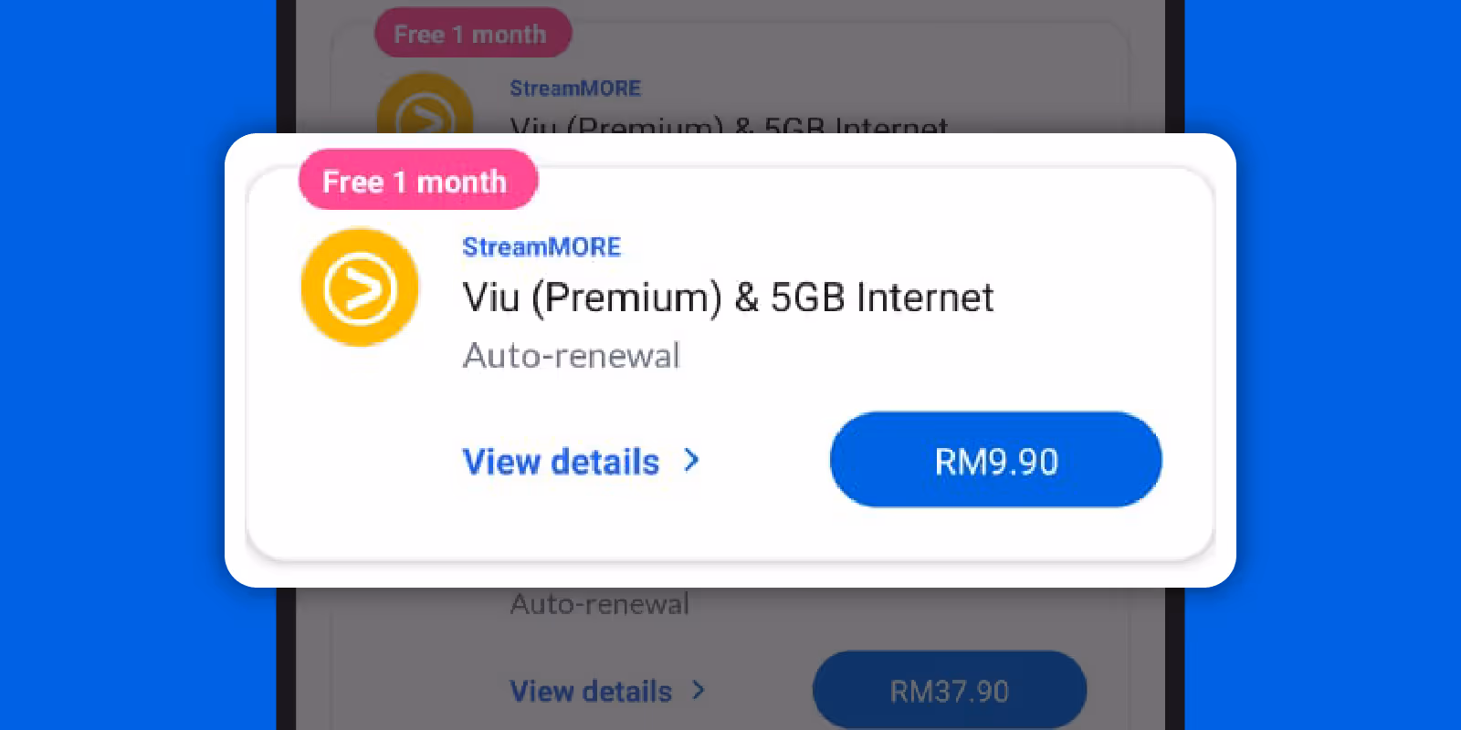 With StreamMORE Add-Ons, you can enjoy 5GB of high-speed Internet along with Viu Premium access — all for just RM9.90 per month.