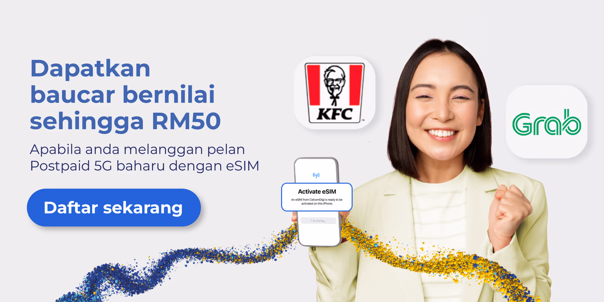 Anda akan menikmati diskaun talian Family/GadgetSIM serta-merta pada kitaran bil semasa anda apabila anda mendaftar untuk pelan CelcomDigi Postpaid 5G 160 dan ke atas.