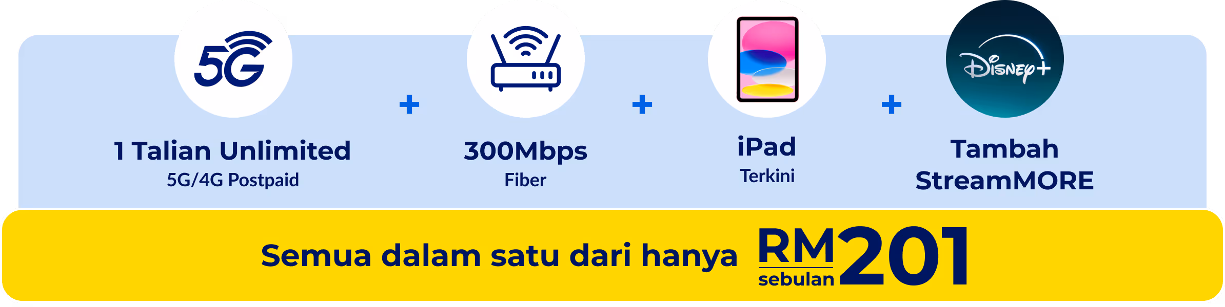 Didatangkan dengan Router WiFi 6, pemasangan PERCUMA, dan pilihan naik taraf kepada 500Mbps dengan hanya tambahan RM20/bulan.