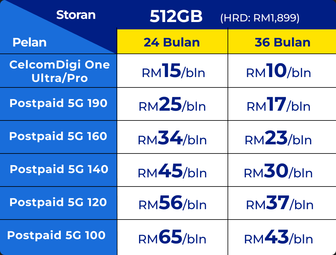 Ketahanan bertaraf Titan. Dapatkannya di CelcomDigi Store. RM0 pendahuluan, 0% faedah — Easy360.