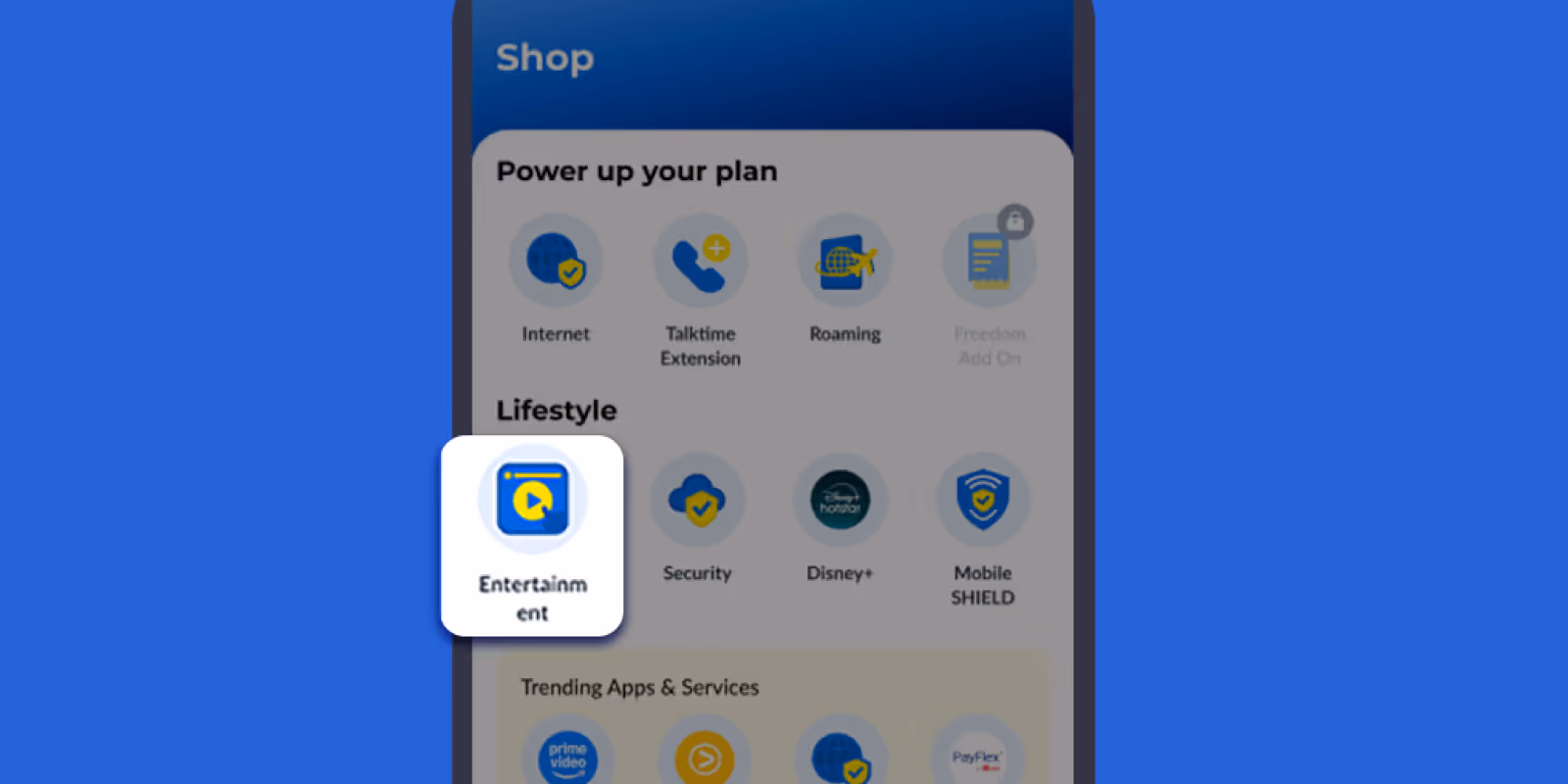 Go to ‘Shop’, and select ‘Entertainment’ under Lifestyle category.