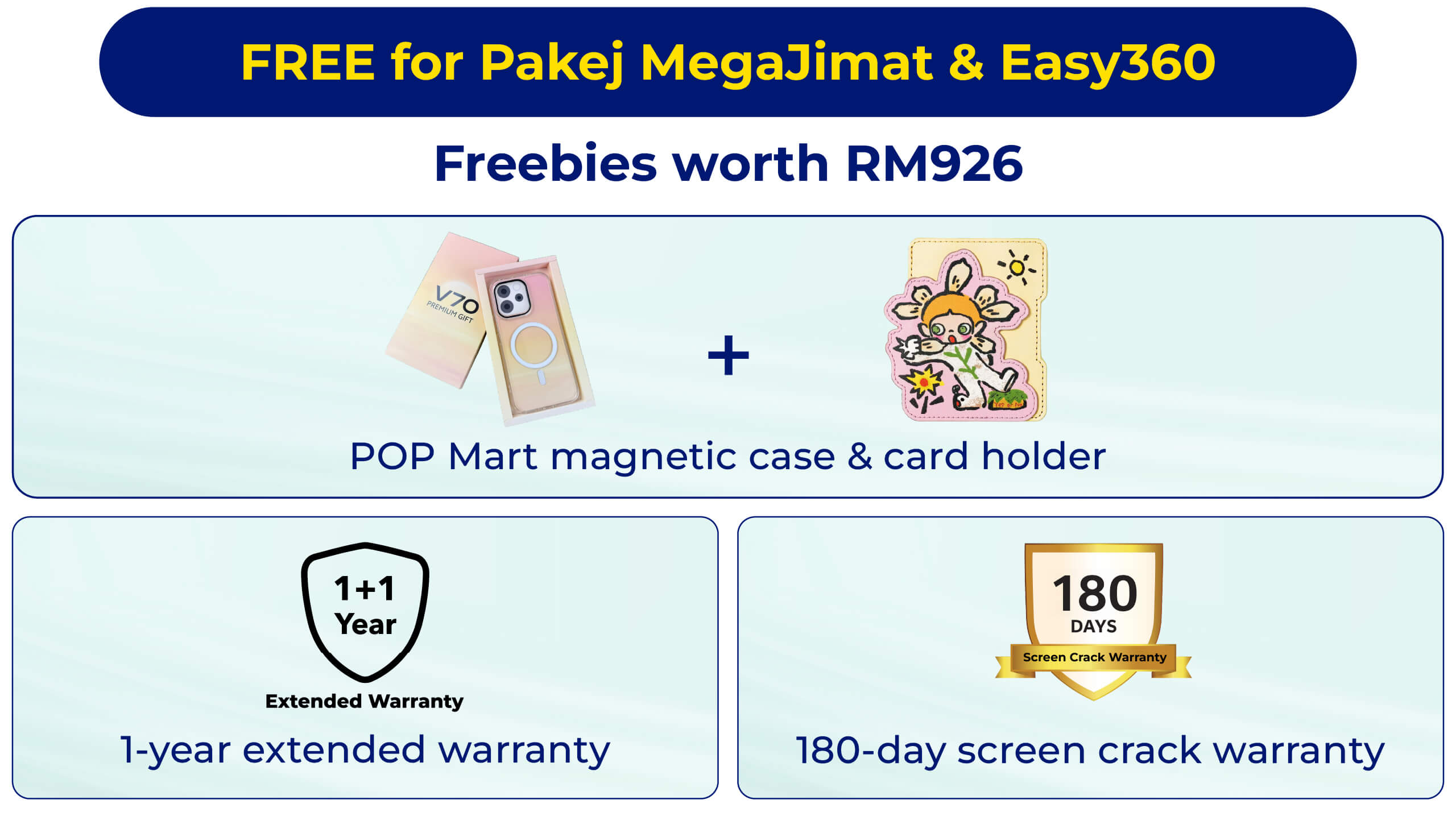 Two easy ways to own — from RM27/month on Easy360 with RM0 upfront & 0% interest, or pay upfront on Pakej MegaJimat with easy contracts up to 24 months